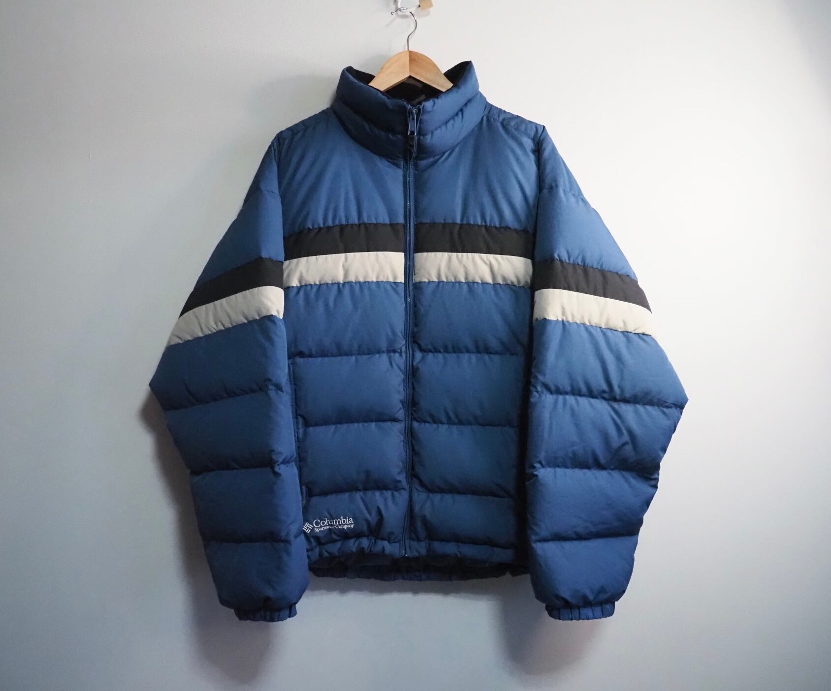 Columbia ダウンジャケット メンズジャケット レディースジャケット ユニセックスアウター ラインデザイン 冬用ジャケット ダウンコート ブルージャケット カジュアルウェア 冬用アウトドア 防寒ウェア Columbiaヴィンテージ 中綿入りジャケット 大きめサイズ メンズL レディースXL 冬用アイテム 保温ダウンジャケット 冬のアウトドアウェア