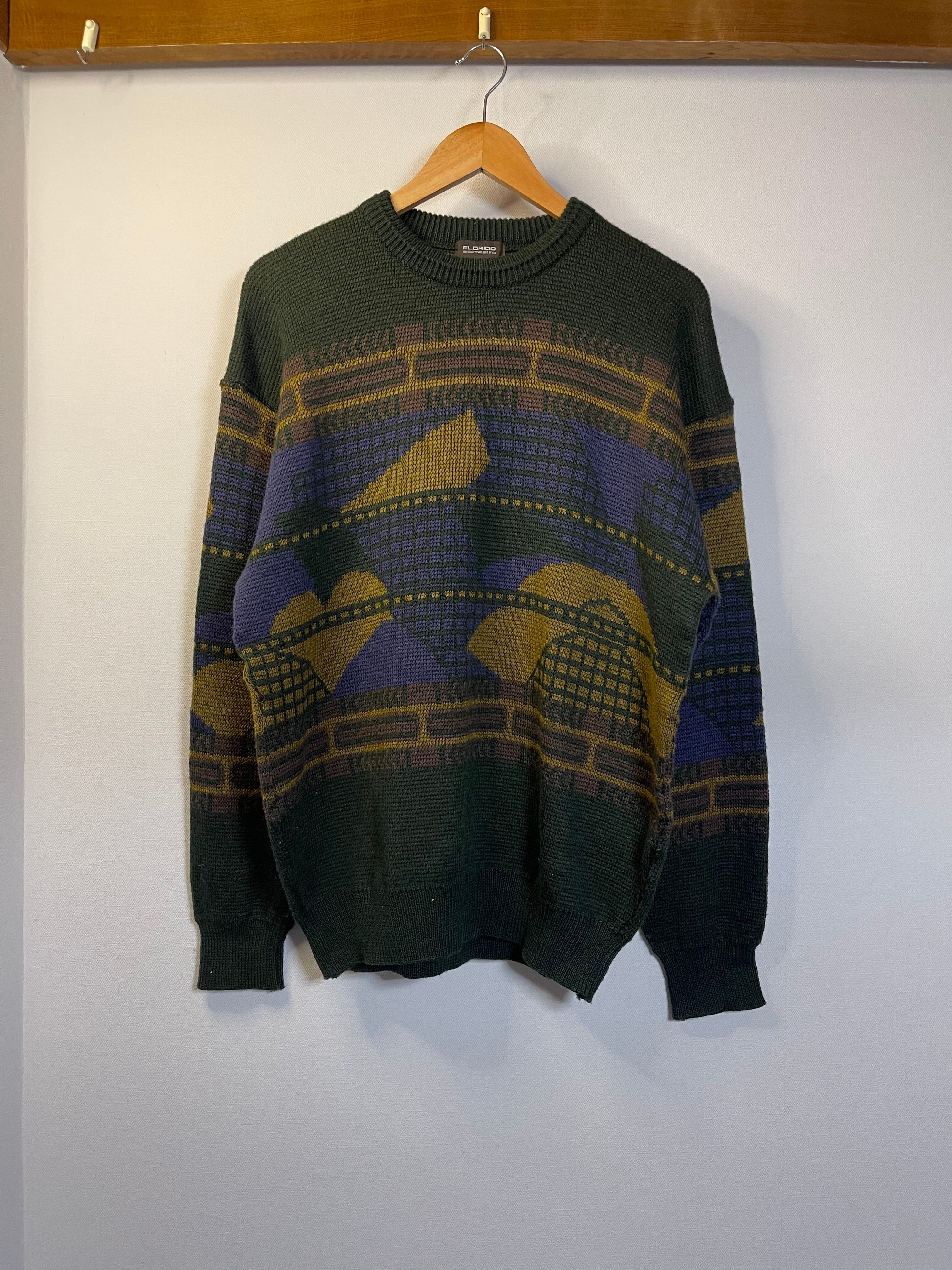 #ヴィンテージ #古着 #ユニセックス #メンズファッション #レディースファッション #セーター #アクリルウール #秋冬コーデ #オーバーサイズ #1990年代 #FLORIO #抽象パターン #レトロファッション #個性派ファッション #暖かい服 #冬服 #ファッション好き #日本製 #カラフルニット #幾何学模様